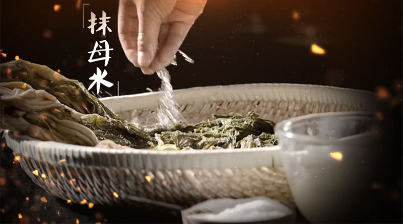 主人彭氏在地窖內(nèi)抬出一壇酸菜打開(kāi)烹之,瞬時(shí)屋內(nèi)暗香浮動(dòng),神爽怡人。